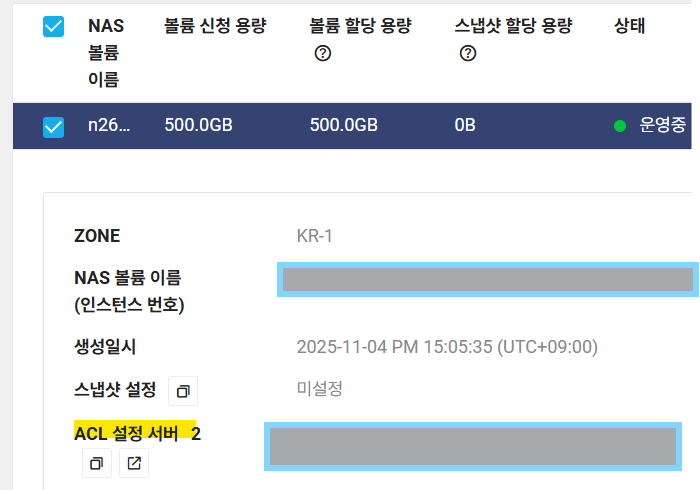 NAS Storage는 VPC상에서 동작하니 같은 VPC에 있는 서버에서 NAS Storage를 마운트 해야한다!